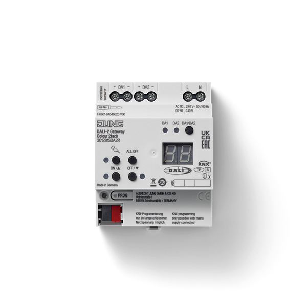 JUNG hat mit dem KNX DALI 2 Gateway Colour und dem KNX DALI 2 Aktor Komponenten auf den Markt gebracht, die die Integration von KNX- und DALI-Systemen in der Gebäudeautomation gewährleisten. Auch in der Nachrüstung einer 1-10-Volt-Leitung. Das JUNG KNX DALI 2 Gateway Colour ist speziell für die nahtlose Integration in KNX-basierte Gebäudemanagementsystemen konzipiert und ermöglicht eine präzise Steuerung von DALI-Betriebsgeräten. Mit dem KNX DALI 2 Gateway Colour können effizienter als je zuvor verwaltet werden. Zu einem der wichtigsten Merkmale gehört die Unterstützung von bis zu sechs Adressierungsarten, die eine detaillierte gruppenorientierte und einzeladressierte Steuerung von Leuchten ermöglichen. Dies ist besonders vorteilhaft für große Räume wie Büros, Ausstellungsflächen und Schulungsräume, in denen eine individuelle Lichtsteuerung erforderlich ist.